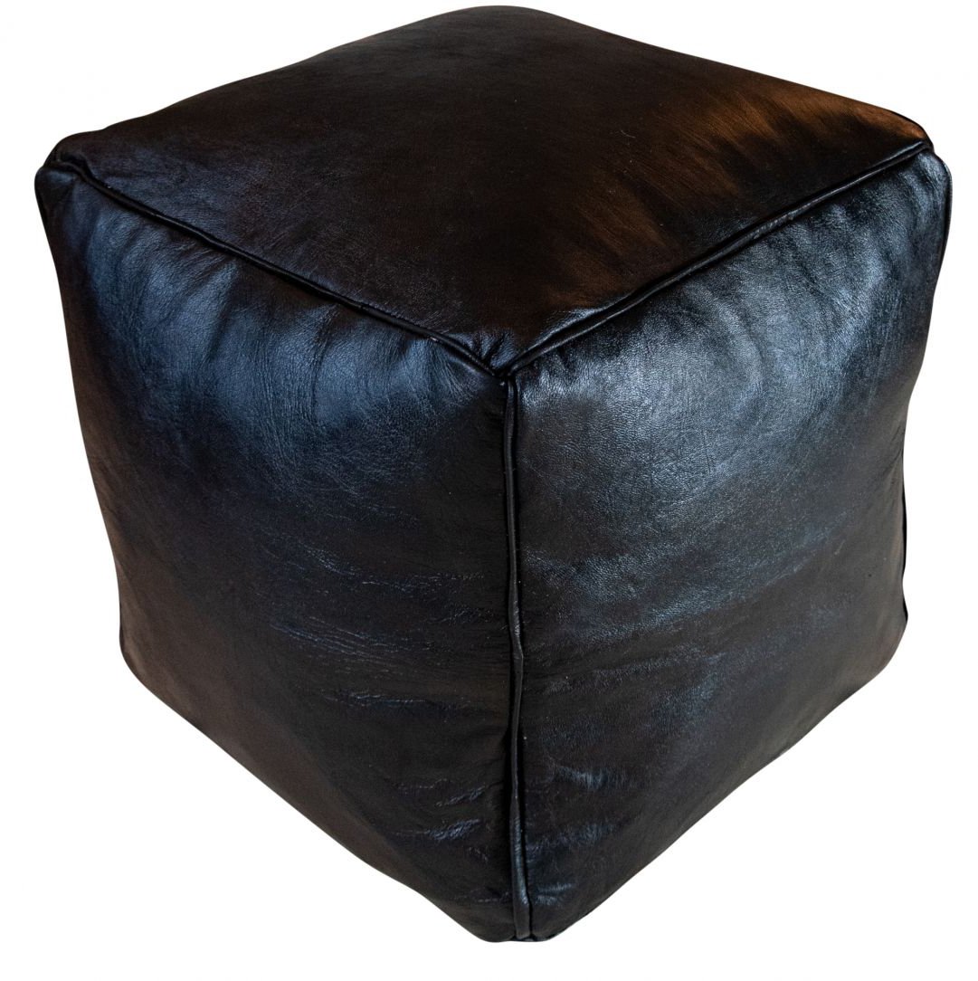 Vierkante Poef Leder - Zwart