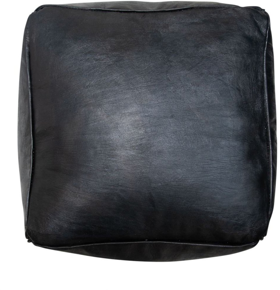 Poufs&Pillows Vierkante Poef handgemaakt Leder - Zwart