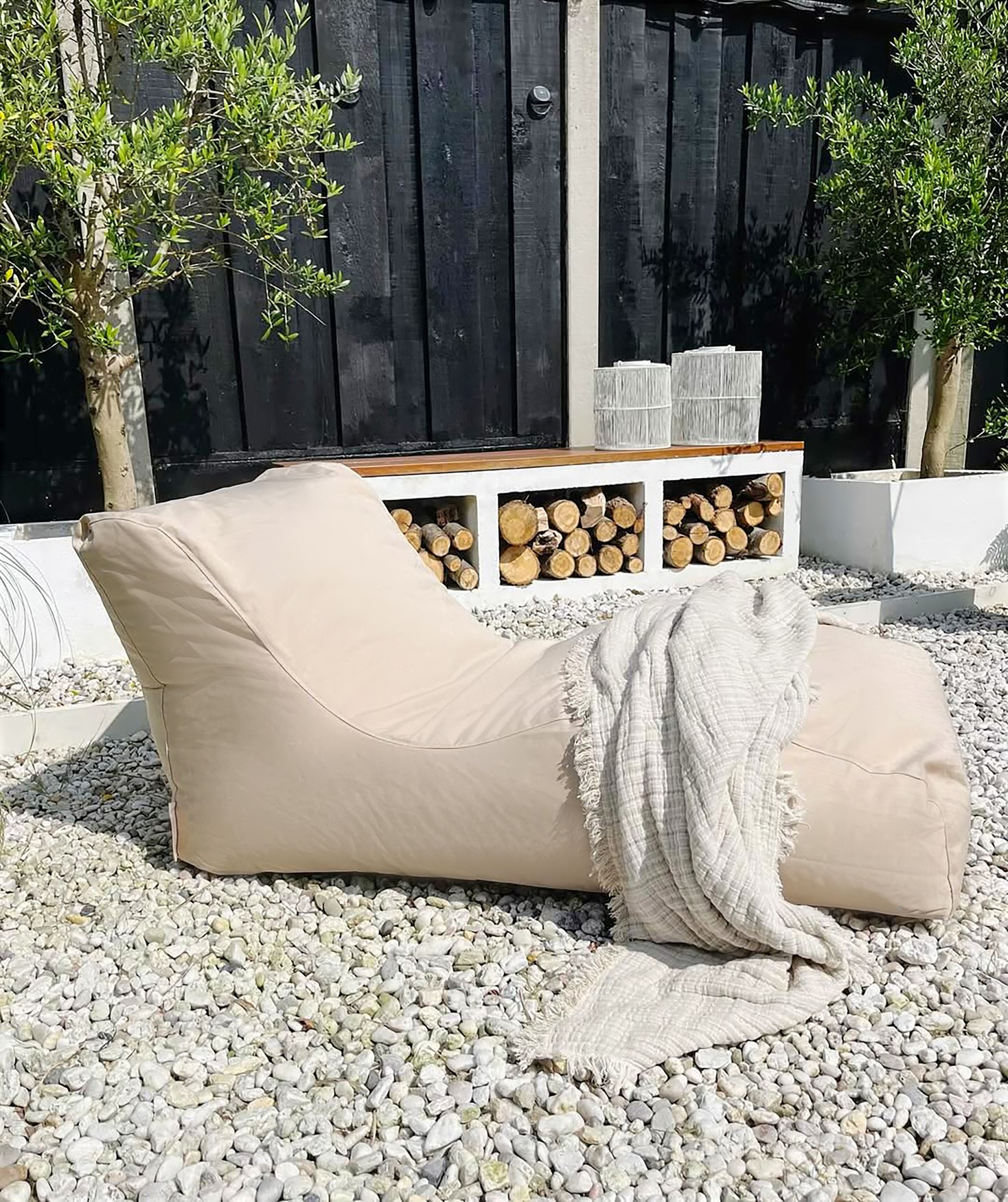 Heerlijk ondersteunend voor lekkere relaxte zomerdagen. Combineer met de outbag poefjes en je hebt je eigen spa in je achtertuin. Als het gaat regenen laat je alles lekker liggen, het kan er tegen. Neem wel je boek en je drankje mee naar binnen.